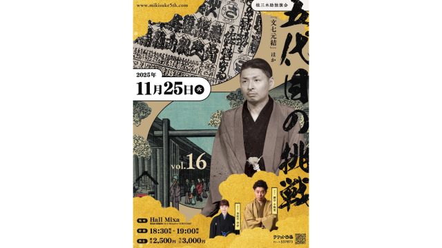 Hall Mixaでは今回が最後。最後に相応しいゲスト柳亭小痴楽師匠をお呼びし「文七元結」を上演!